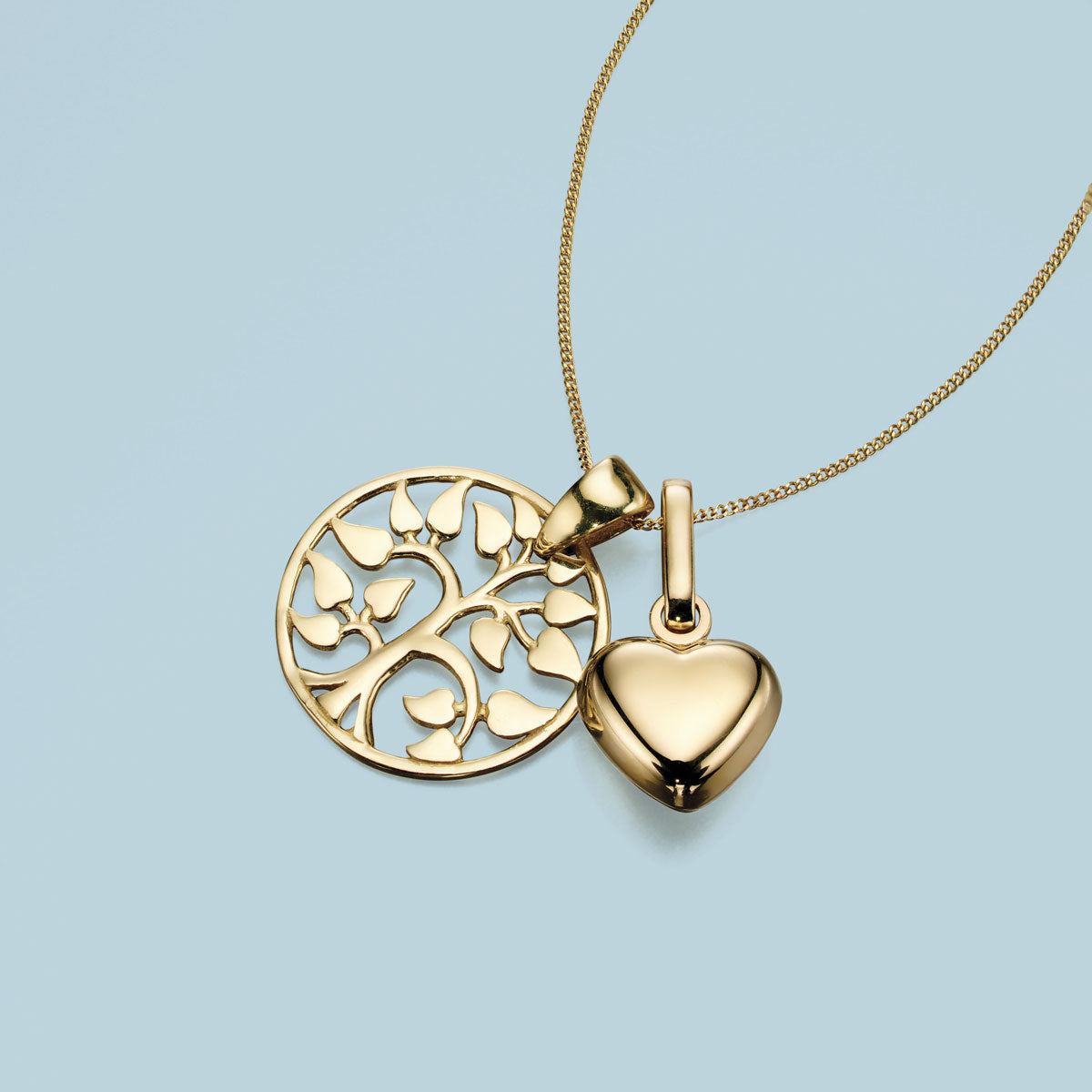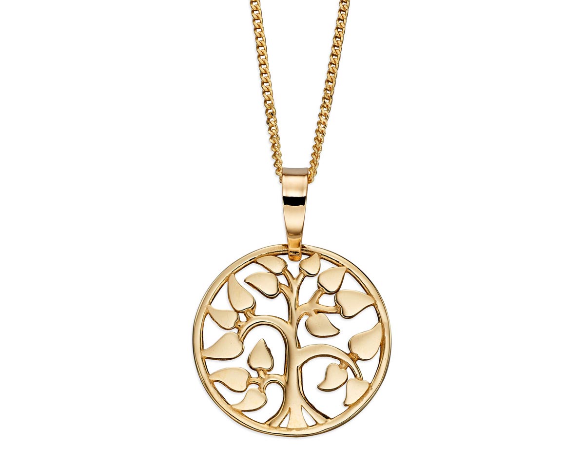 Siro kultainen elämänpuu riipus. Elämänpuu on yksi tunnetuimpia symboleja ja suosittu aihe koruissa.