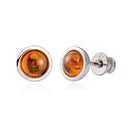 A simple and sleek silver ring featuring genuine Baltic amber.