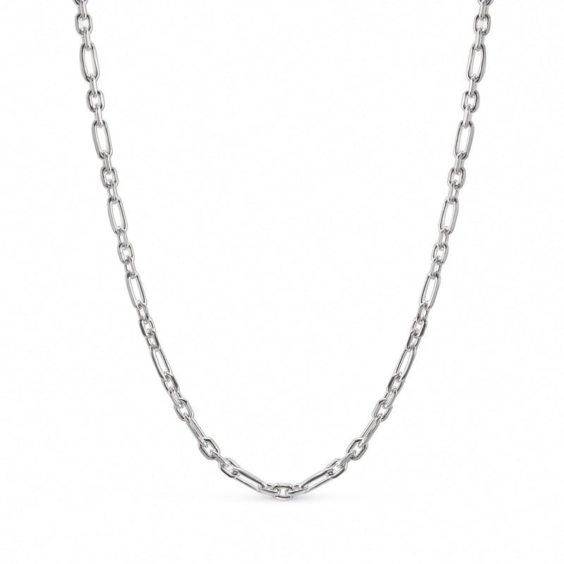The popularity of the link chain has risen in recent years and it often appears in fashion magazine photos. The popularity is due to the simultaneous layering of necklaces and chains, and a link chain pairs well with, for example, a delicate necklace.