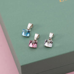 A minimalist and sweet silver necklace. The pendant features a 6 x 6 mm clear, cubic Swarovski crystal that sparkles brightly for its size.
