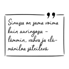 "Sinussa on sama voima kuin auringossa - lämmin, vahva ja elämäniloa säteilevä."