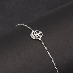 Hopeinen, siro rannekoru, jossa suosittu Elämänpuu -symboli.