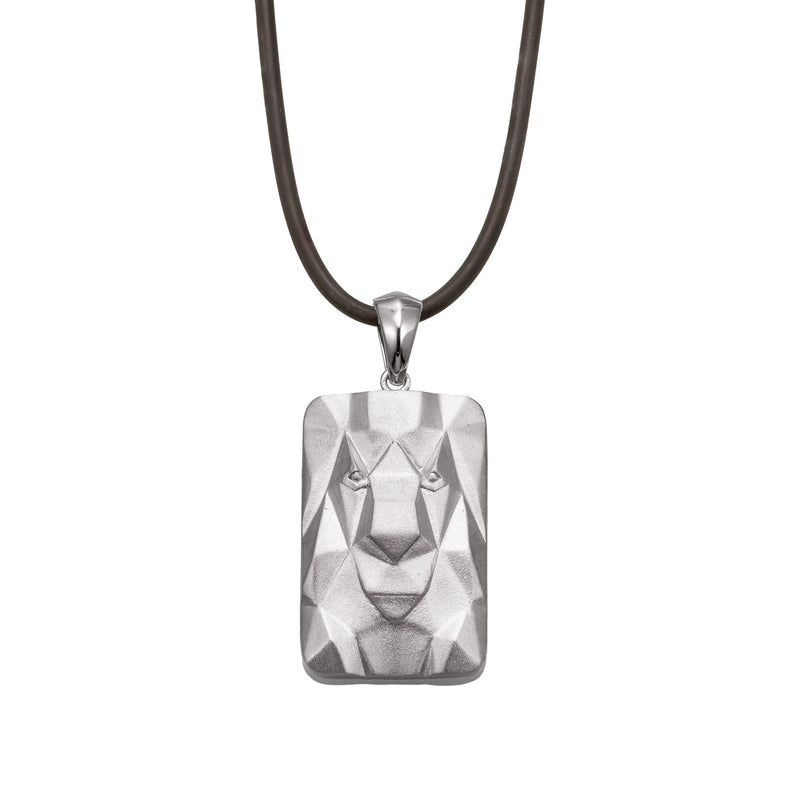 Tämä näyttävä ja geometrisesti muotoiltu leijona -riipus yhdistää estetiikan ja ikiaikaisen symbolin. Riipuksen moderni muotoilu heijastaa valoa terävästi ja korostaa eläimen voimaa ja katsetta.