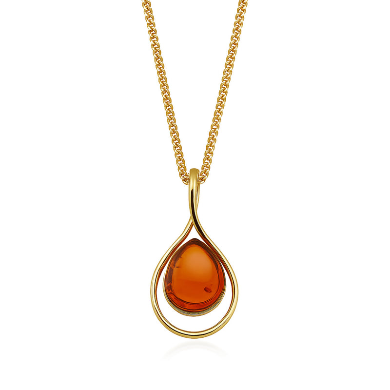 Yksinkertaisen tyylikäs kullattu hopeakaulakoru Itämeren meripihkasta. Riipuksessa on sulavan pyöreät muodot. Se on kevyt ja ilmava. Sopii hyvin jokapäiväiseksi käyttökoruksi.