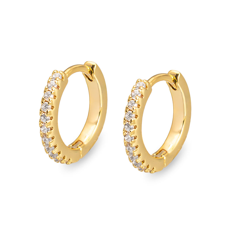 Kapeat hopeiset korvarenkaat, joissa kauniisti upotetut kirkkaat pienet korukivet. Klassinen, elegantti ja kevyt malli.