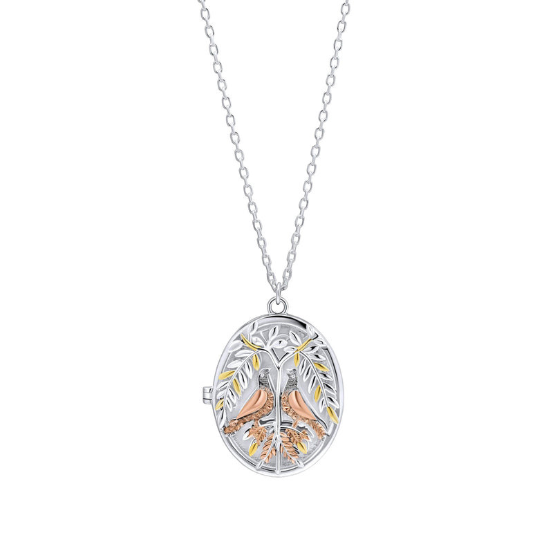 Tämä lumoava medaljonkikaulakoru on saanut inspiraationsa Laura Ashleyn kausiluonteisesta arkistokuosista ja kahdesta vastakkain istuvasta turkinkyyhkystä – rakkauden, rauhan ja yhteenkuuluvuuden symboleista. Ajattoman romanttinen koru huokuu Laura Ashleylle ominaista runollista eleganssia ja luonnonläheistä estetiikkaa.