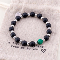 Musta akaatti rannekoru vihreällä kivellä