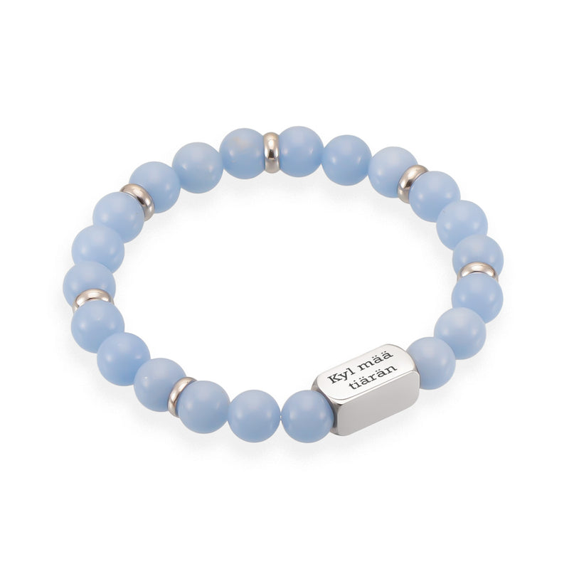 Kauniin sininen angeliitti rannekoru, jonka koristeeseen voit lisätä oman tekstin