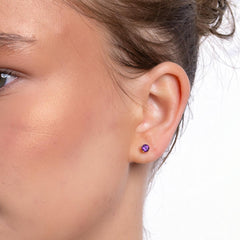 Kauniit pienet violetit ametisti korvakorut. Aidon viistehiotun ametisti -korukiven koko on noin 4 mm. Runkona klassinen nelisakarainen ja keveä kruunurunko 375 kultaa. Nappikiinnitys.