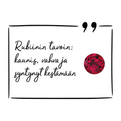Klassista, ajatonta ja tyylikästä muotoilua edustava rubiini riipus. Aito luonnon jalokivi on upotettu kultaiseen 9k runkoon.